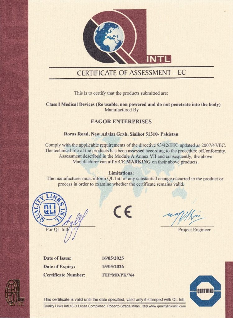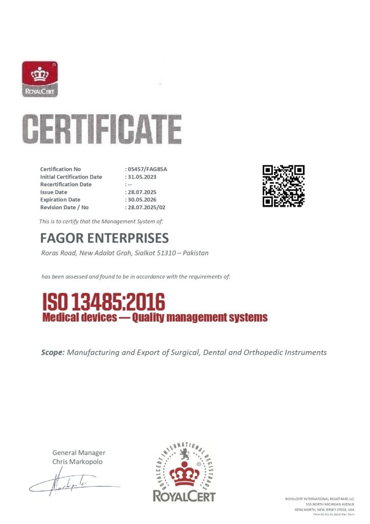 Fagor Enterprises is ISO 13485:2016 and CE certified, ensuring all our surgical and medical instruments meet international quality and safety standards. Our ECM certification further reflects our commitment to excellence, reliability, and global compliance.